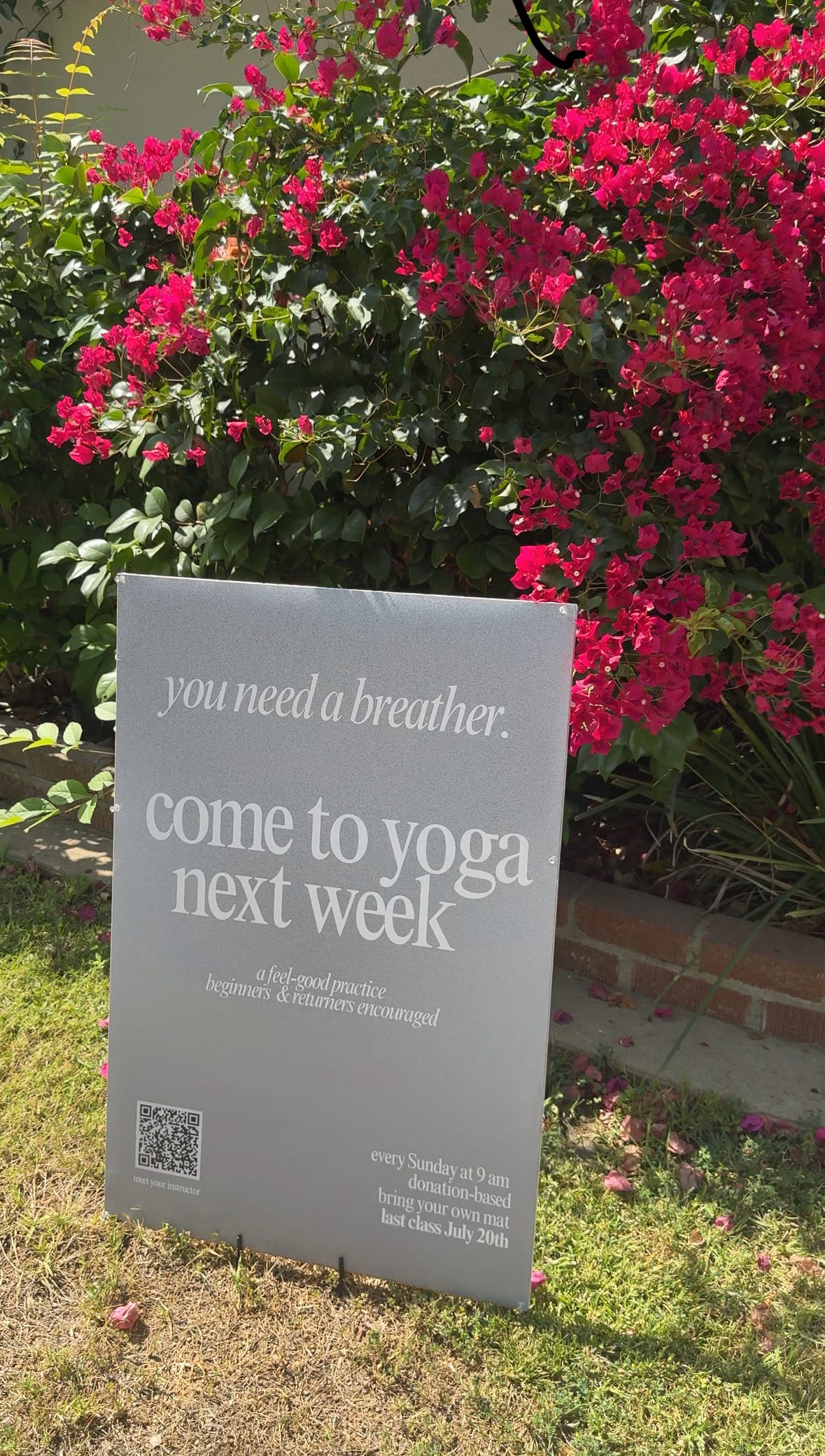 I mentioned, last time I wrote, that I would try my hand at advertising—to get strangers to come to my yoga class at the farmer’s market (and build a clientele). I paid like $60 for a week of ads on Facebook and don’t see myself doing it again soon. But I’m pretty proud of a big poster/sign I made for the market entrance. And Sunday, two young ladies came to my class because they saw the sign the week before! !!!!! !!!! I meannn! There you go!