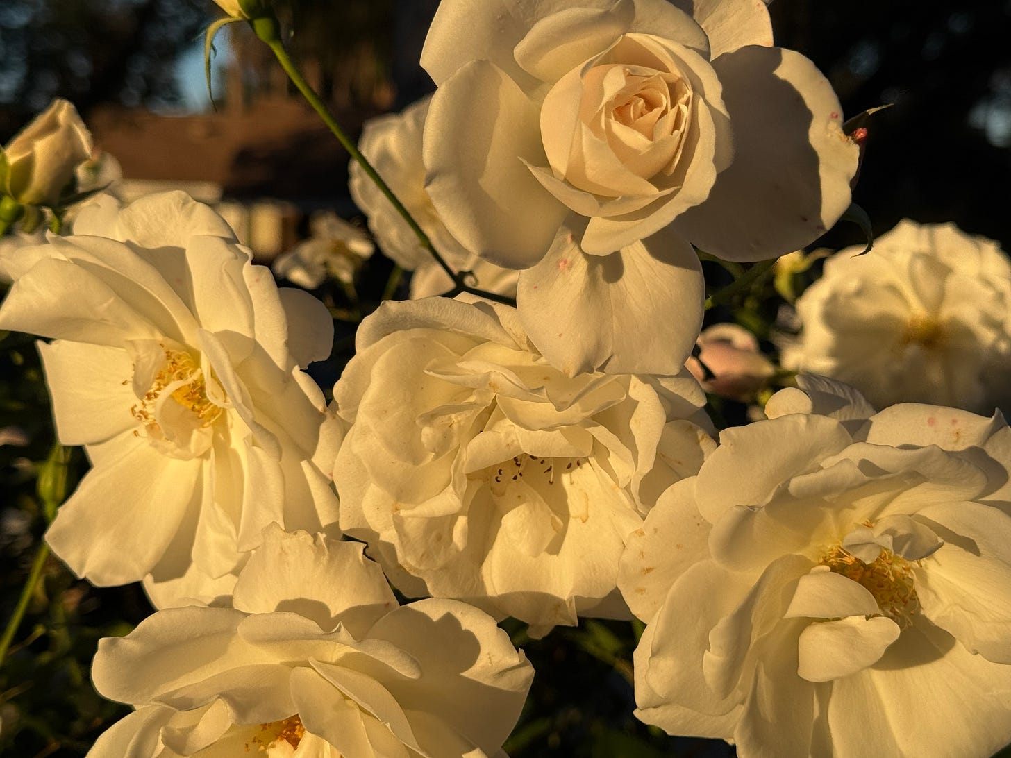 I’m knocking small items off my to-do list, but things won’t feel fully in swing again for another week. In these in-between days, I sit in the last corner of sun in the backyard after work. I turn my heater on and off, I mentally prepare for the drop of my favorite yoga challenge. I hum made-up love songs like a disney princess. I touch blooming roses in passing.